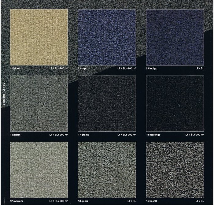 En Distribuciones de moquetas y textiles CANAL les ofrecemos una amplia gama de colores y texturas en moquetas tufting, realizadas en pura lana virgen y poliamida.